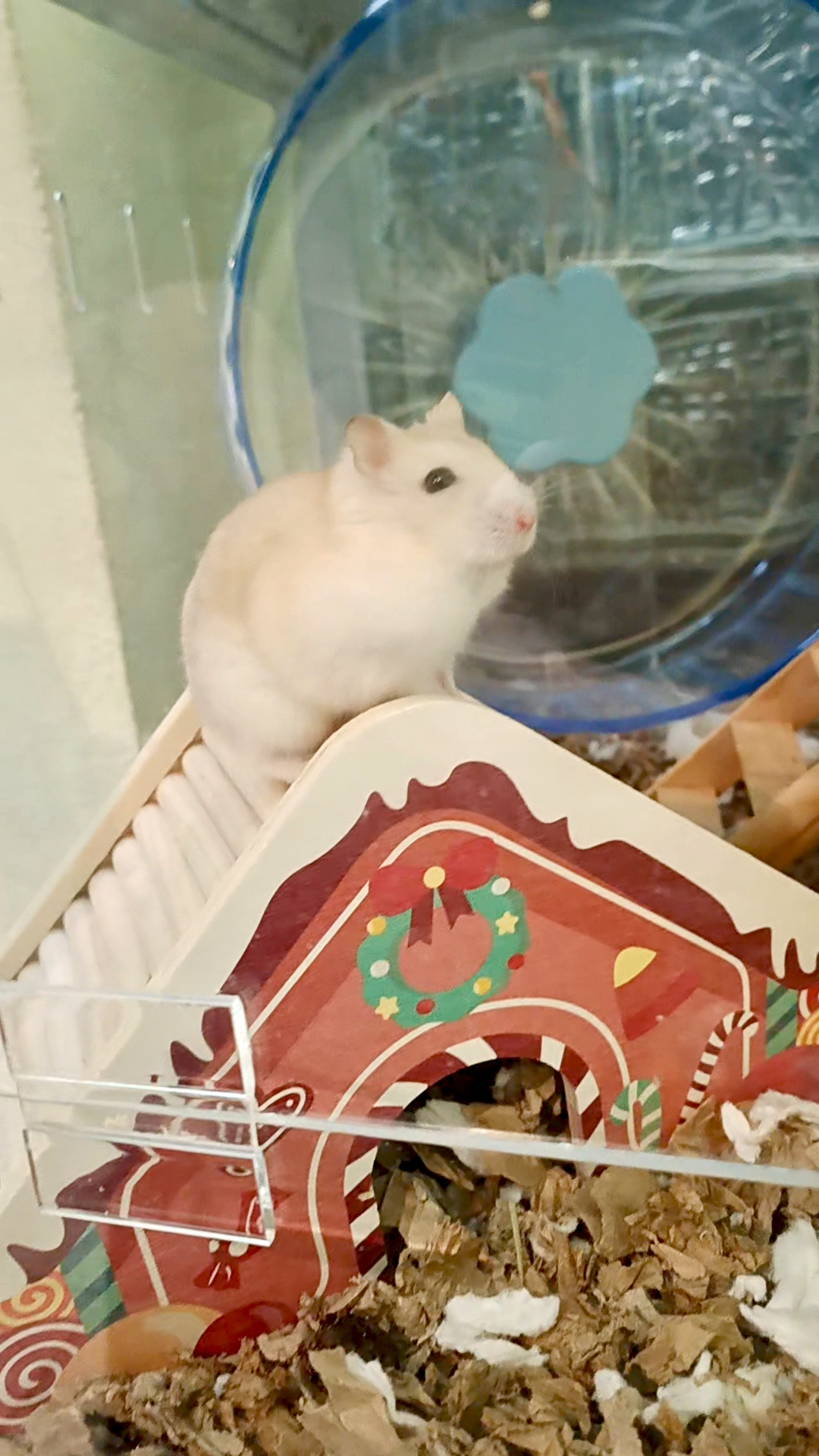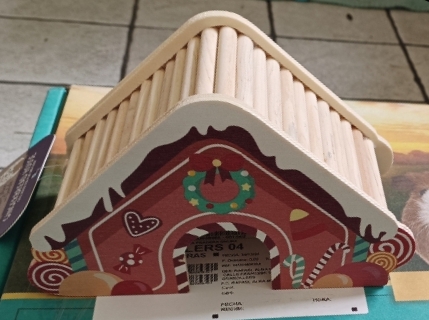 Encantadora casita para pequeños roedores, fabricada en madera.