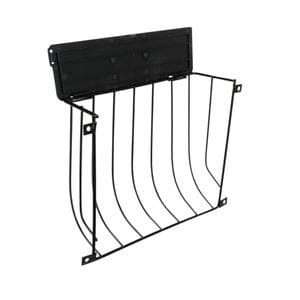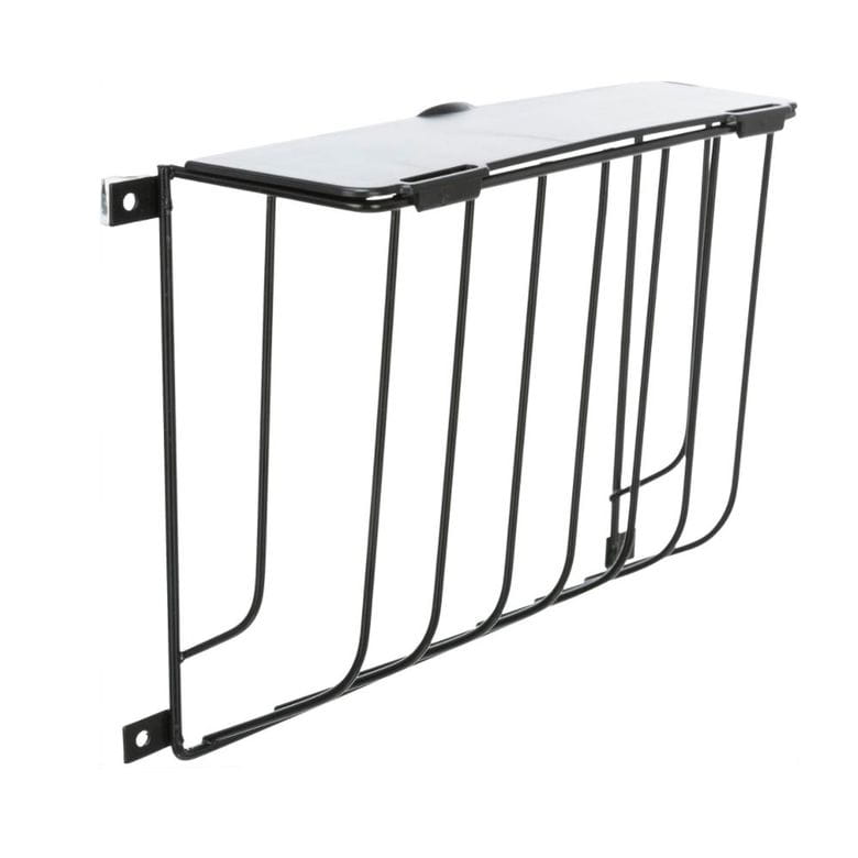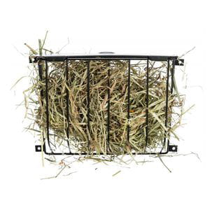 Porta heno y verduras de metal con tapa. Diseñado para atornillar a la pared del recinto.
