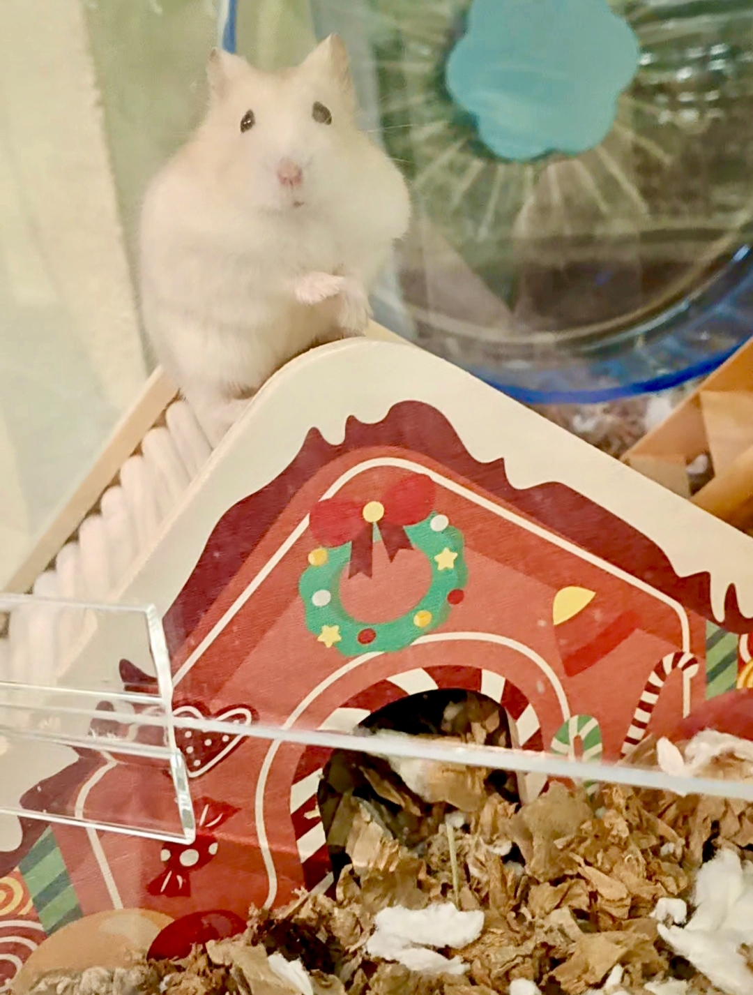 Encantadora casita para pequeños roedores, fabricada en madera.