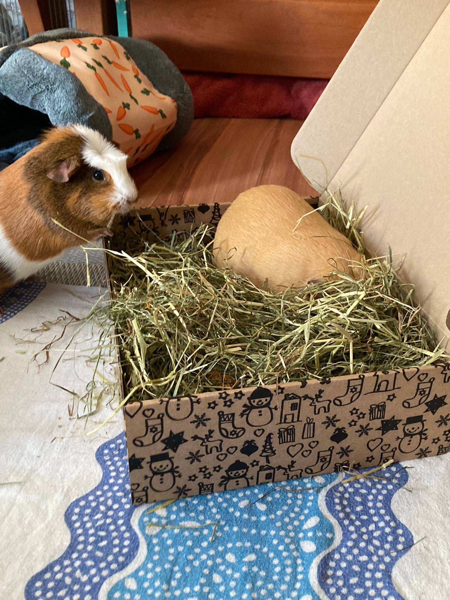 Delicadamente empaquetada sobre una deliciosa cama de Heno Small Pet Select de Primer Corte. Envase ecológico en caja de cartón, respetuoso con el medio ambiente.