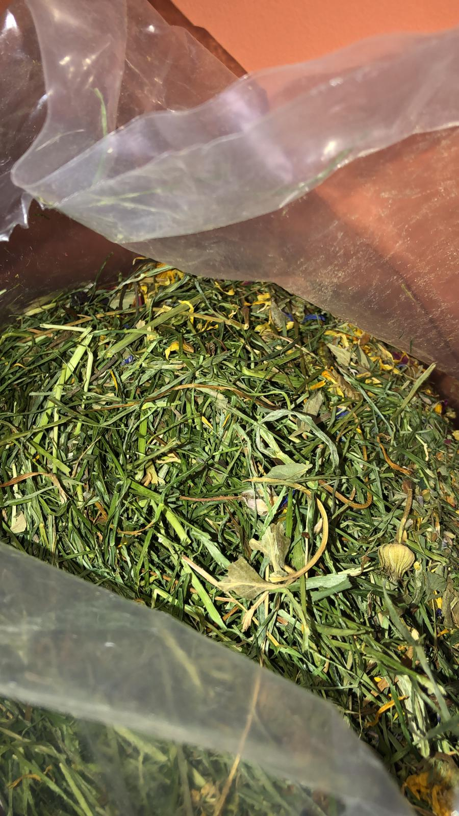 Por naturaleza este heno contiene sabrosas hierbas, flores silvestres y nutritivo trébol, pero además, lo hemos enriquecido con diferentes sabores a elegir (Detalles en la pestaña Más Información)