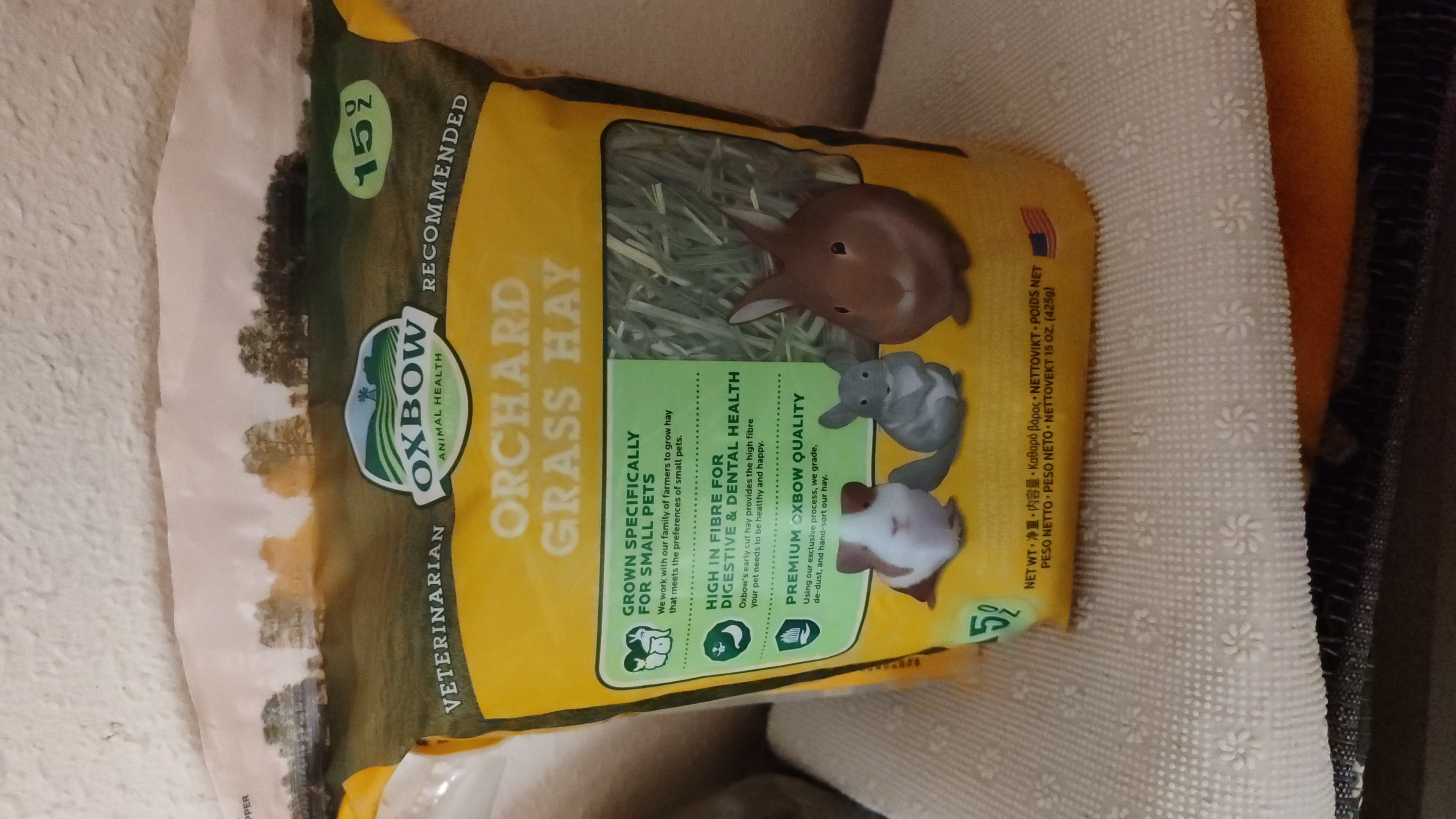 El Heno de Huerto Oxbow proporciona nutrientes altos en fibra y bajos en proteína y calcio.