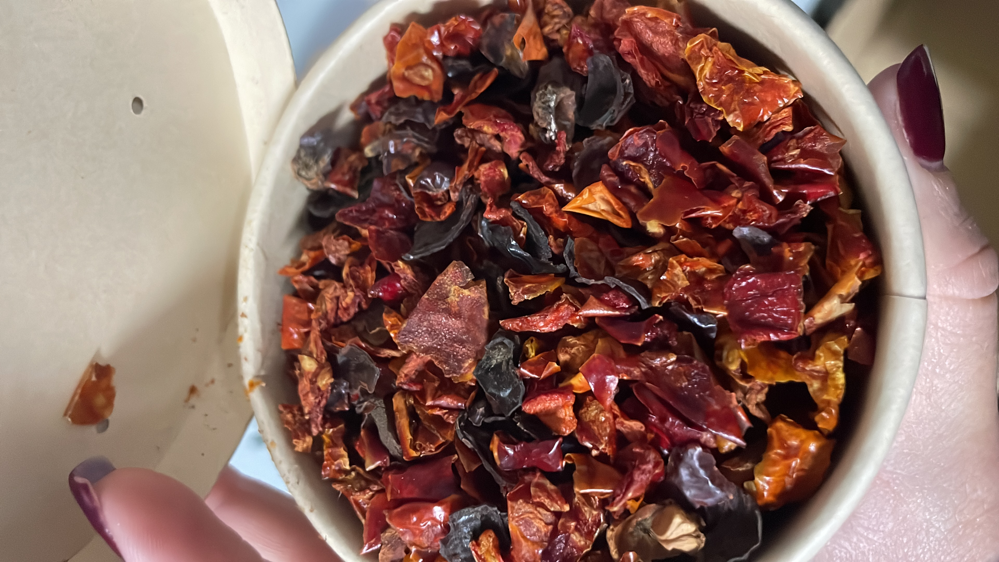 Suplemento natural a base de pimientos rojos, tomates secos y escaramujos troceados deshidratados de manera tradicional, conservando todo su sabor.