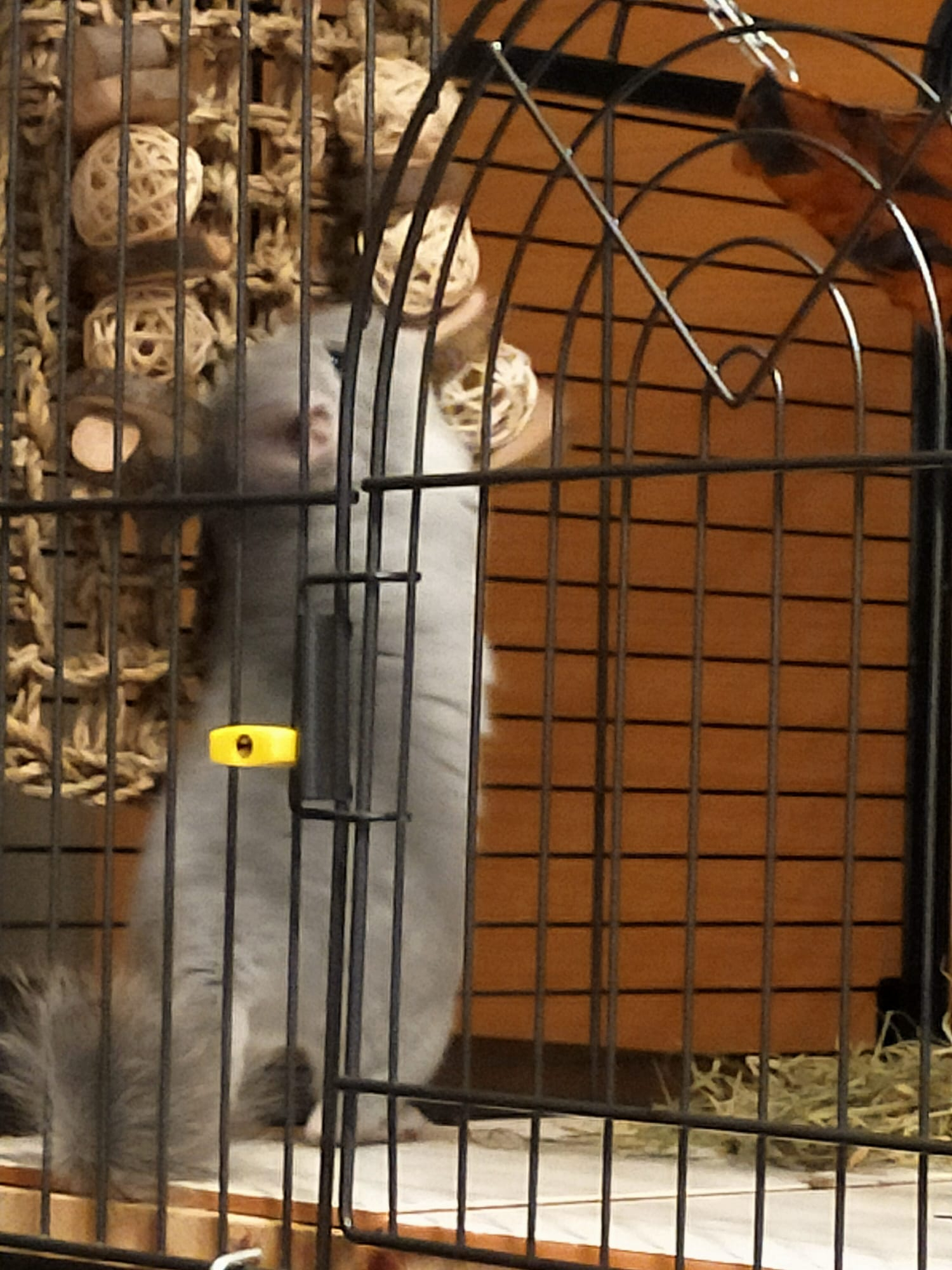 Con juguetes colgantes para roer