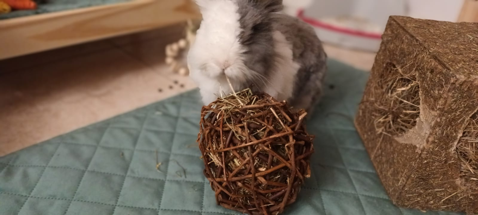 Composición: Heno 62,5%, Mimbre 25%, Caléndula 12,5%